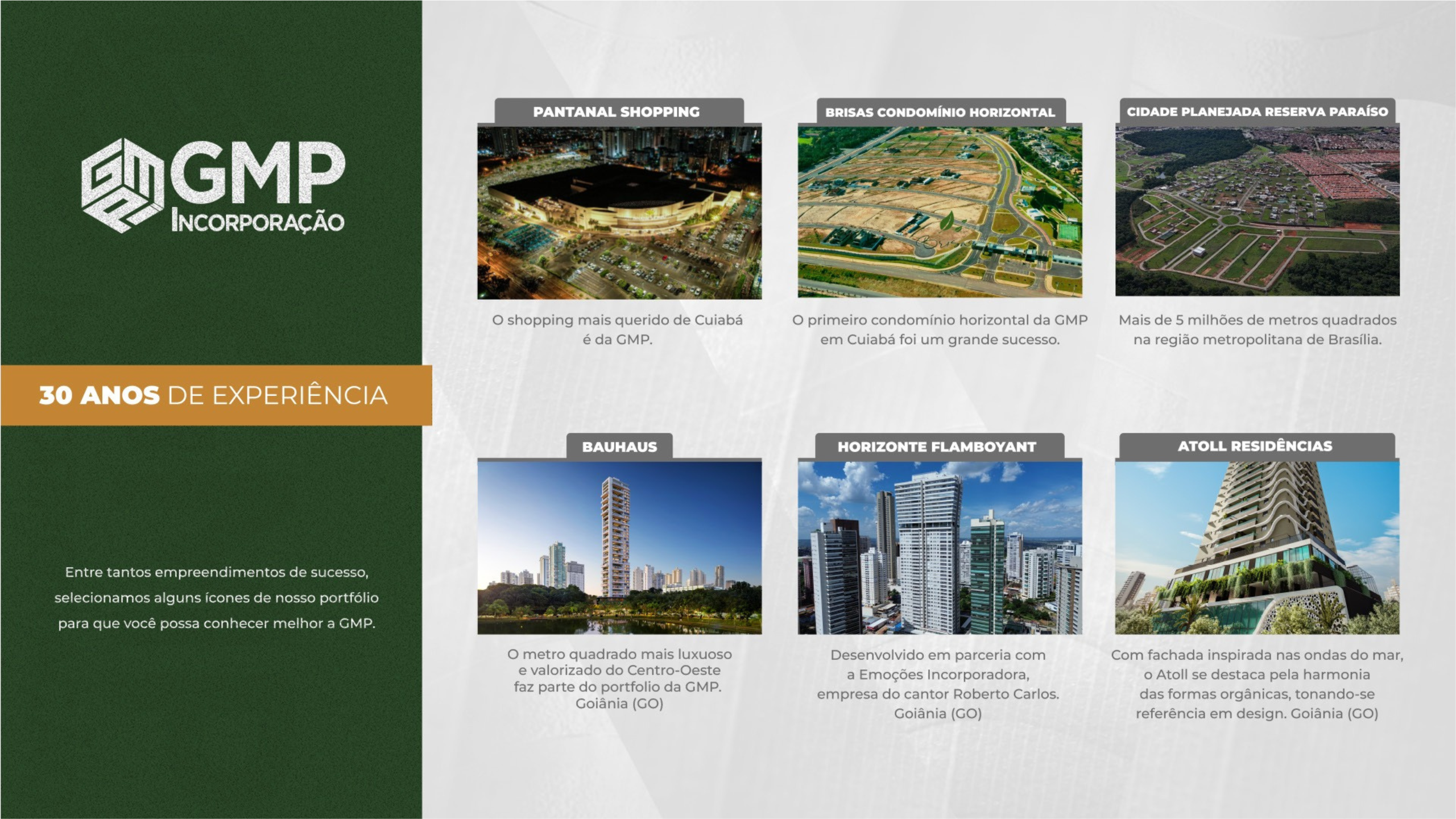 O Altavista é um projeto assinado pela GMP Incorporação, empresa com 30 anos de tradição e mais de 1 milhão de m² construídos em MT, GO, DF e BA. Em Cuiabá, é proprietária do Pantanal Shopping e do Brisas Condomínio Horizontal.